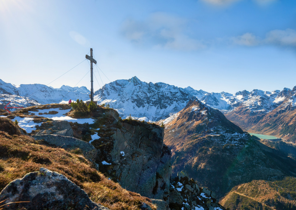Vom Kopssee gemütlicher Anstieg zur Breit-Spitz, leicht bergab, dann bergauf zum Vallülasee, dann über die innere Kopsalpe zurück zum Zeinisjoch.